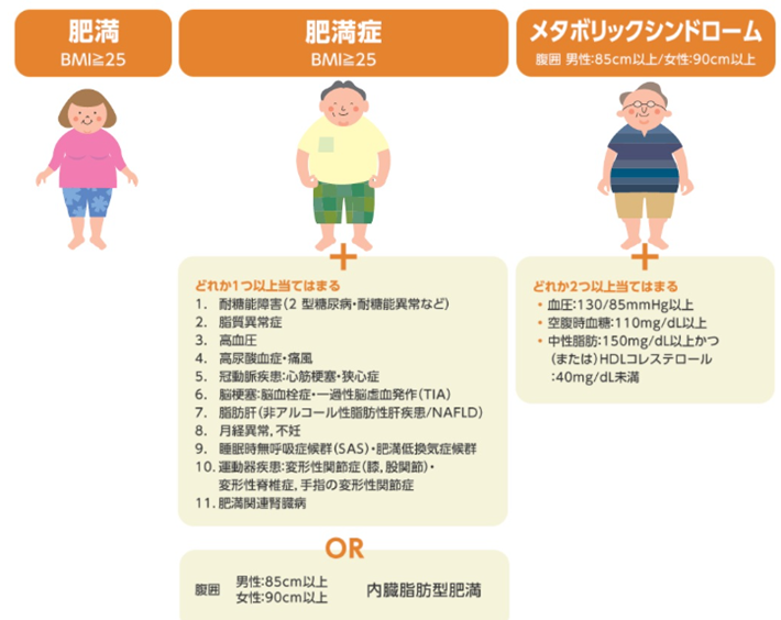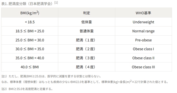 日本肥満学会では、BMIが25以上の状態を「肥満」としています。[1]