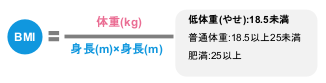 肥満度の判定には、世界的に使われている「BMI(Body Mass Index)」が用いられます。